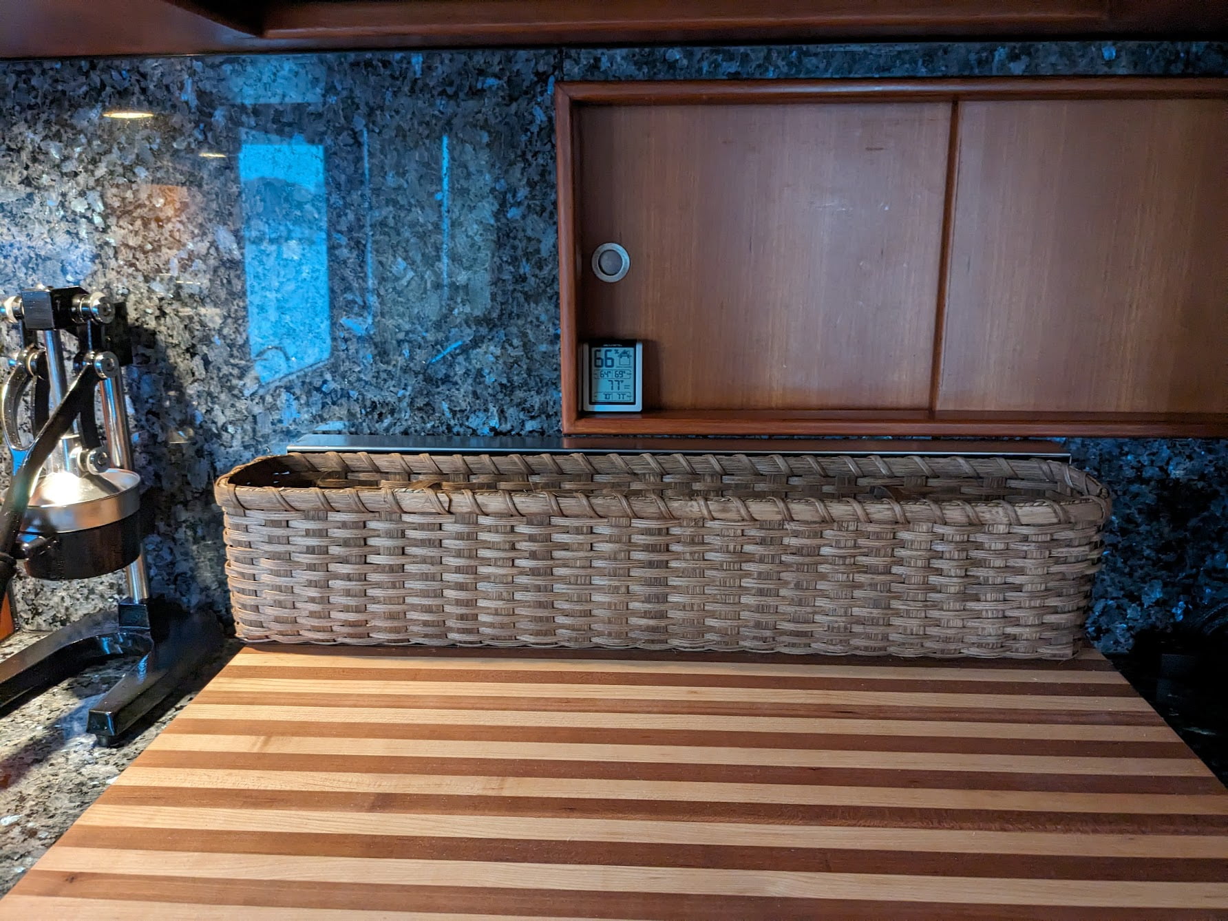 Without hindering any additional counter space, we wanted a basket to store our fruits, snacks and vegetables. Something long and narrow without compromising too much butcher stove top space. Every search fell short. At one point, even a floral window wicker basket was being considered. Eventually, I stumbled on mantle baskets which were long and narrow but either too long or short. Further, narrowing my search I came across 1803 Ohio Farm Baskets. Inquiring whether they could customize a mantel basket measuring 30″L x 6″H x 5″W without a handle. I was thrilled Ann was able to do so. It’s a great addition to our galley. An easy to move if necessary. We love it!