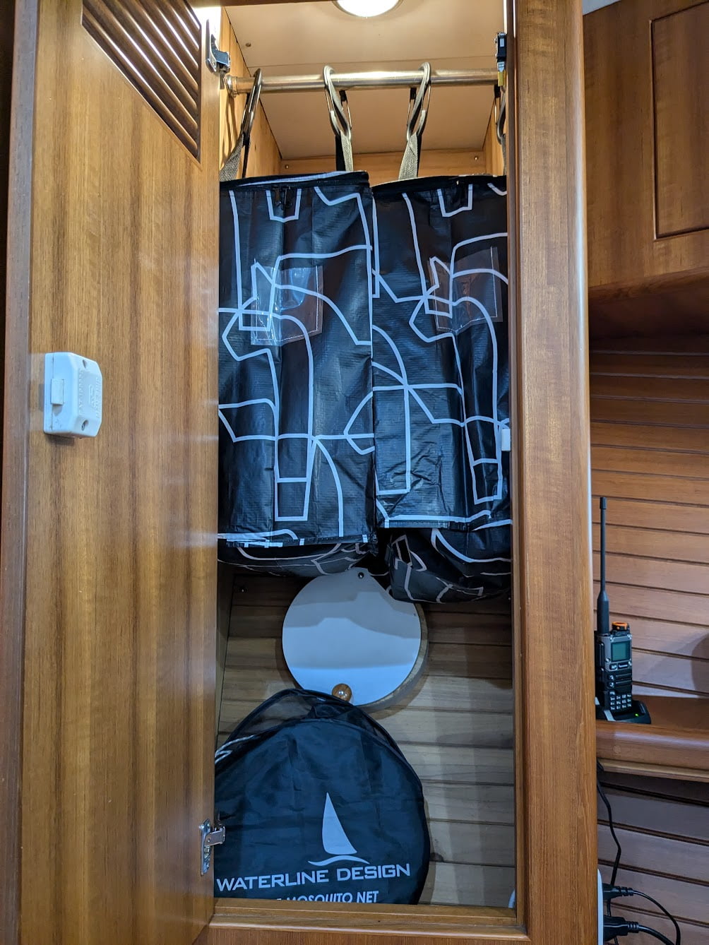 Some of our closets onboard can be deceiving. Meaning they appear larger than actuality and require easy accessibility. So, to make it simple. I found these inexpensive S-Biners at Walmart. Also, available at Amazon, Home Depot, Lowe’s and Target.