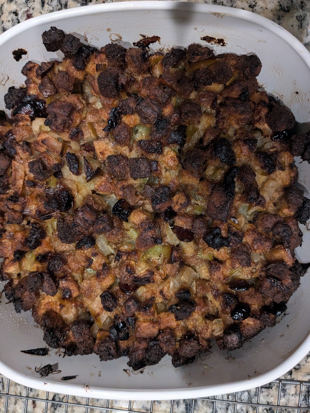 By my standards the stuffing as photographed is burnt BUT Jacques oddly prefers “crispy” stuffing.