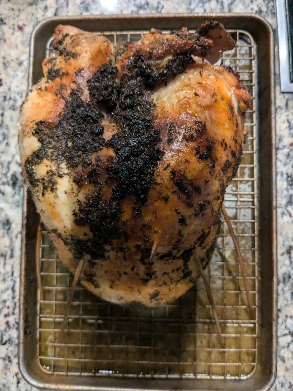 - Don’t forget to get some butter rub under the skin as well for flavor and crispy skin.