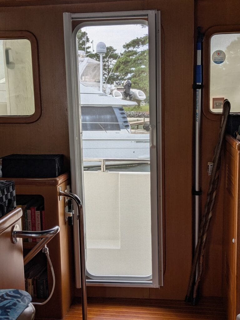 FYI…Phantom Screens tends to land lock the service provider to your zip code. After a year of enduring the Baltimore, MD distributor run around to whom said, it was wasn’t possible without moving the hardware which would have made the batten down the hatch doors useless in rough seas. Yet knowing many other Nordhavns had them installed with the exact doors without any issues, we relocated the vessel to Deltaville Boatyard (Deltaville, VA) following referrals of Innovative Screen Solutions for the install to best avoid the Baltimore, MD service region.