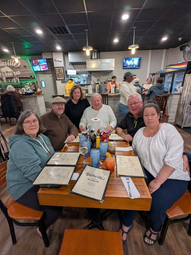 - We finally met Sharyn & Tom S (M/V Further, N47). Our first “Nordy Noodle” with only N47 owners over dinner at Deltaville Tap & Raw Bar (Deltaville, VA). Too good of a time was being had to breakaway, and it was that moment Charlie invites everyone for dessert onboard M/V Bluewater. Nancy’s facial expression of surprise was utterly priceless. “Oh, Charlie“.