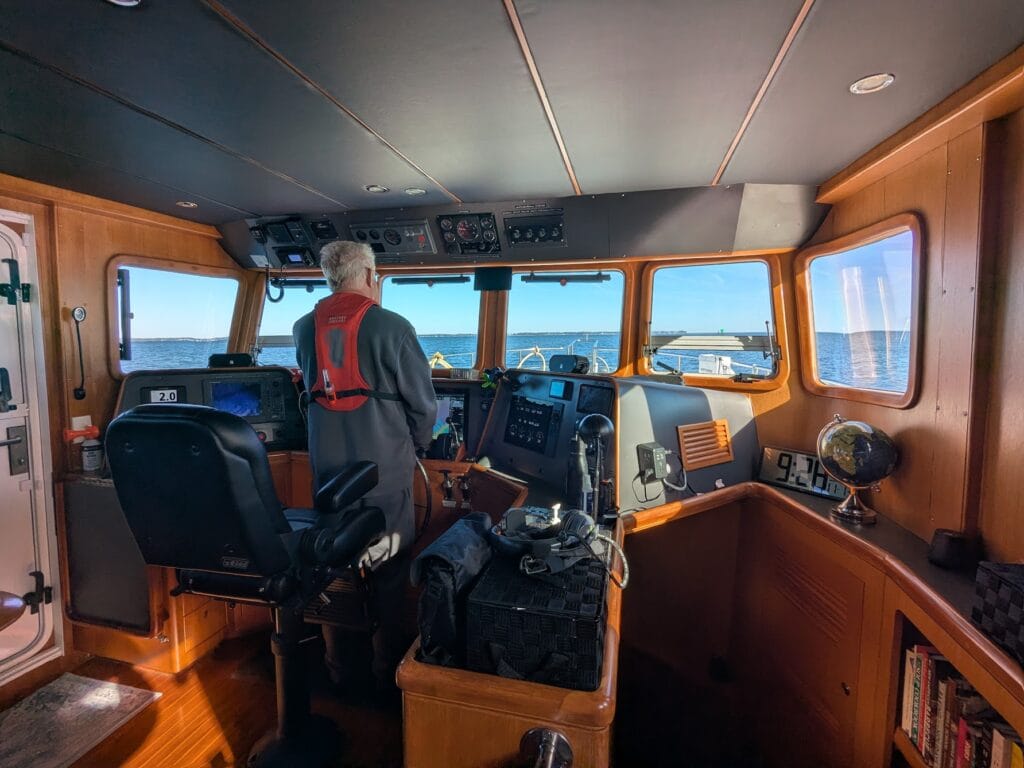 - With the water reflection the Pilothouse had us cooking like a rotisserie chicken in 84°F (outside 60°F), opening port side door wasn’t enough ventilation so we opened starboard door too. Absolutely, loving our retractable Phantom Screen doors!
