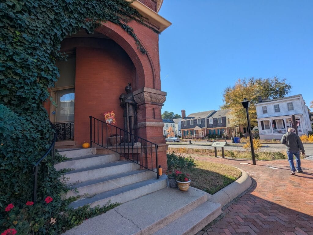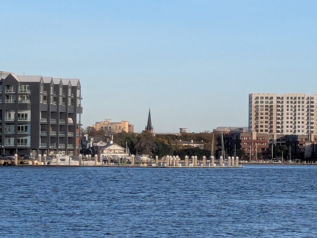 - Today we walked beyond the gates for lunch. Anytime we stop our cuisine preference search in no particular order: French, Italian, Puerto Rican, & Thai. Since it’s been a while we opted for Thai cuisine, we dined at Thai Basil (Portsmouth, VA). YUM! Anticipating a night at anchorage, even planned ahead with a order of Tum Yum to go. Especially, since nights are cold yet. The walk there was a nice stroll through the Old District, with much of the streets lined in uneven brick sidewalks. Some beautiful homes with arches, balconies, porch swings, and wrought iron. Without a doubt a late night tale of Ghost Walking the Streets featured on Lifetime or in the spirit of the upcoming holidays a chick flick Hallmark Special. Charming quaint town! True confession, with full bellies we did Uber back. My first time requesting an Uber ride! No, I don’t live under a rock, but rural life did require a vehicle to get around. And the few times we ever needed one…well, Jacques just handled it. But, considering we’re carless, this is the new normal. Whoever said ya’ can’t teach an ole dog new tricks, clearly was mistaken (LOL).