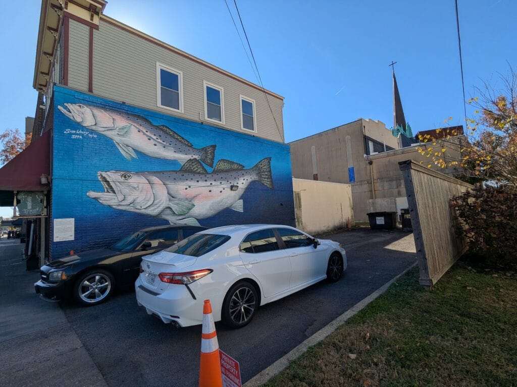 - Our friends Nancy & Charlie B (M/V Bluewater, N47) shortened their Fishing Bay anchorage stay due to incoming winds and docking. Of course disappointed for them, we selfishly were thrilled to have them greet us upon arrival. Followed by a delicious dinner at The Table Market & Restaurant (Deltaville, VA). To know, Jacques then ya’ know he couldn’t pass up the opportunity for soft coffee ice cream. While the large cinnamon bun caught my attention for breakfast tomorrow.