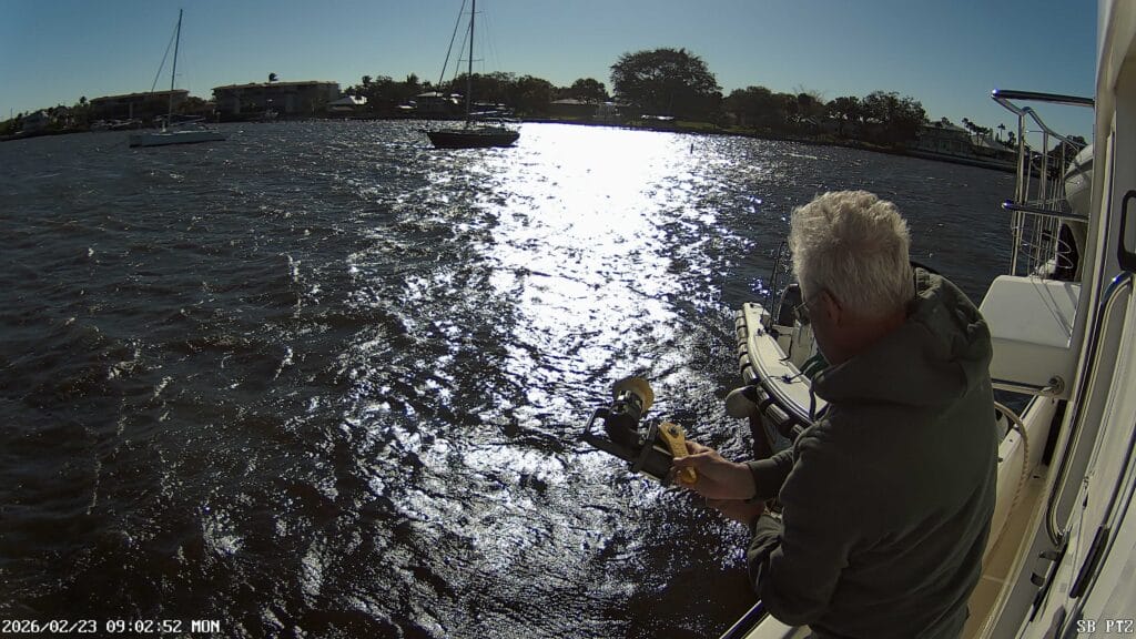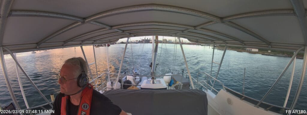 - Jacques drove from the flybridge until we got past the inlet. First time driving up there in awhile.