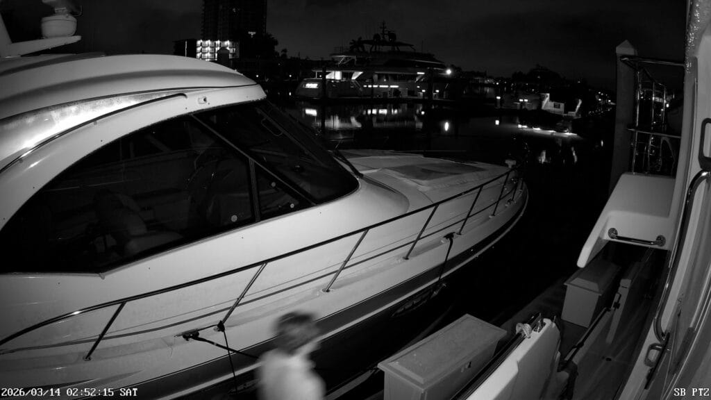 - (Sat, 3/14/26) At 2:52AM our security detected a person on our starboard. Jacques inquired with the marina office if there were any other complaints, nope. Staffer agreed, had the motion light turned they were up to no good at that hour as it appeared one of the two was preparing to board.