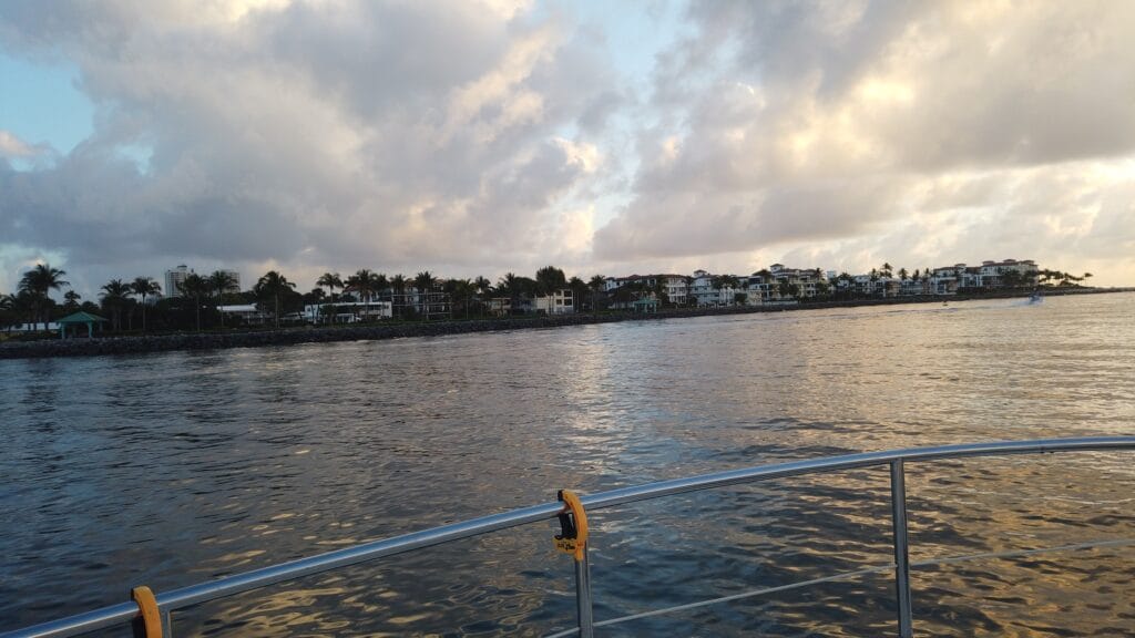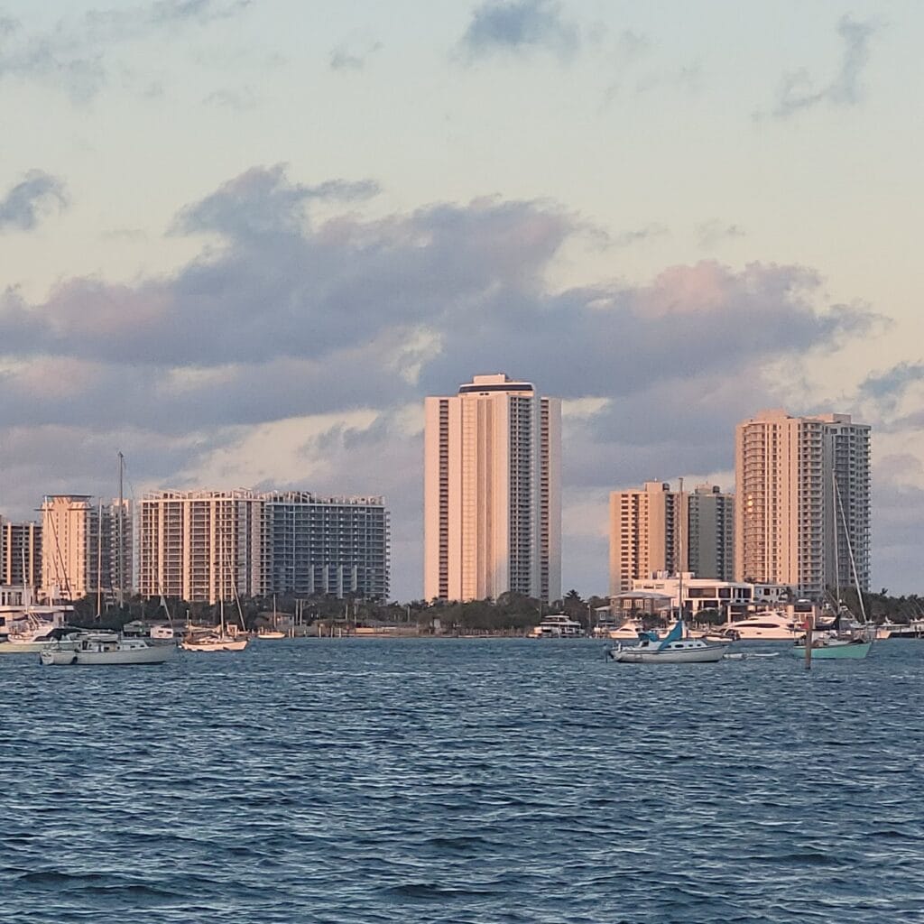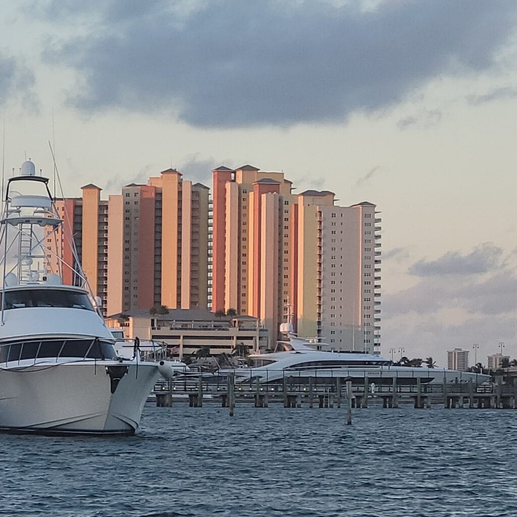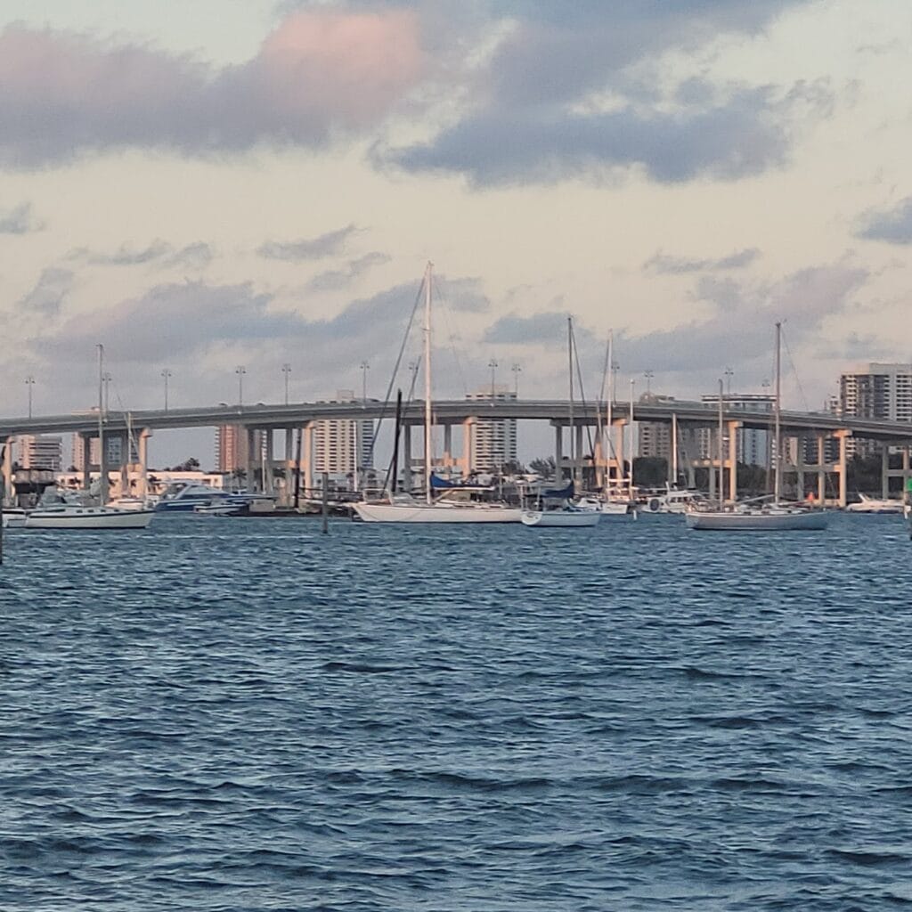 - Captain presented me with two choices for today: #1 ICW Route with Lots of Bridges (24 Total with 2 Opening Required) + Traffic or #2 Offshore Cruising (Get Over the New Fear). Easy decision #2! So, debate on setting the alarm clock for slack tide departure. Our departure was delayed by roughly 15 minutes, but getting off the dock and turning around to exit at slack tide (otherwise, there would have been a strong fairway current) was flawless. I was a bit apprehensive last evening after observing vessels turning sideways in the fairway current for a week and, on several occasions, coming extremely close to docked vessels. Farewell, Riviera Beach, FL.