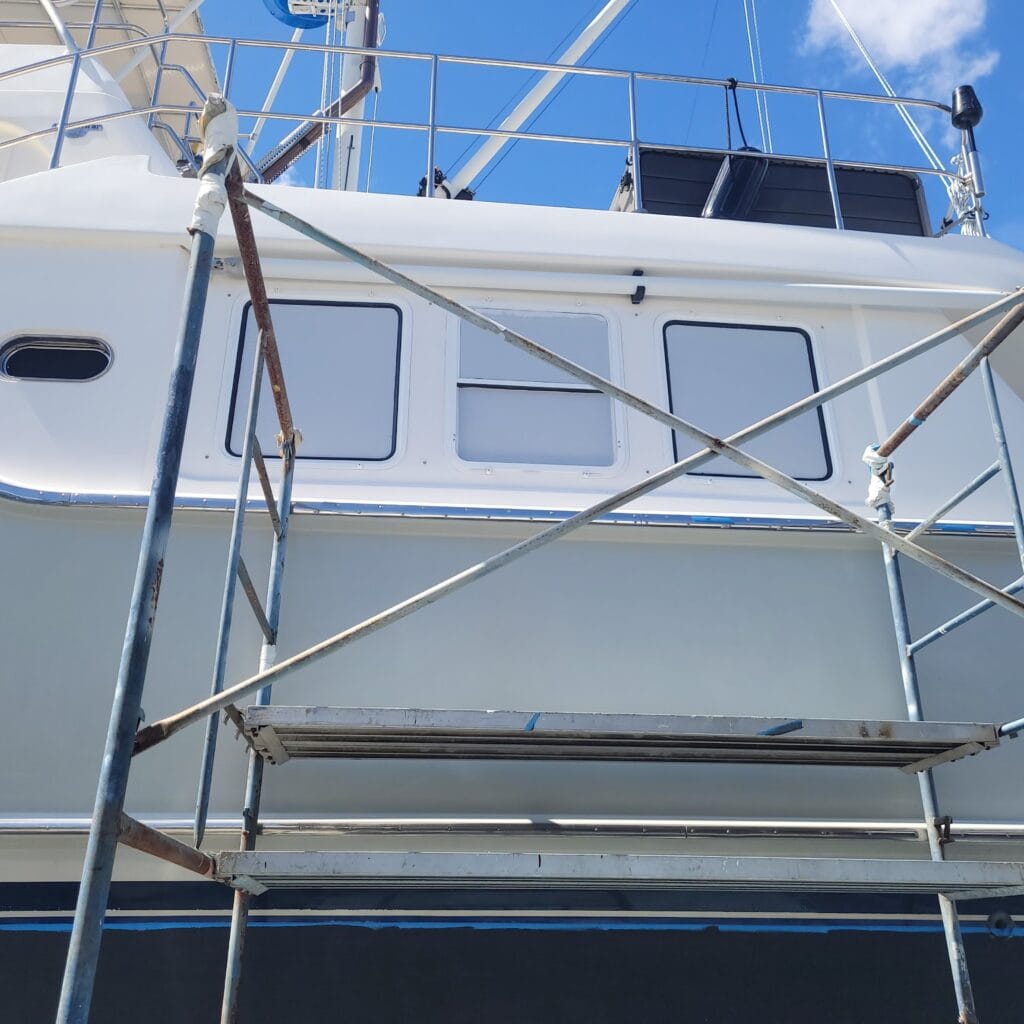 - Shortly, after getting blocked, Jacques noticed another bottom being painted and inquired. As our luck would have it, Patagonia Services Division LLC (Dania Beach, FL) were able to coordinate as well. By early afternoon, they were present to prep the surface. Did require that we extend our stay until Tuesday, 3/24/26.