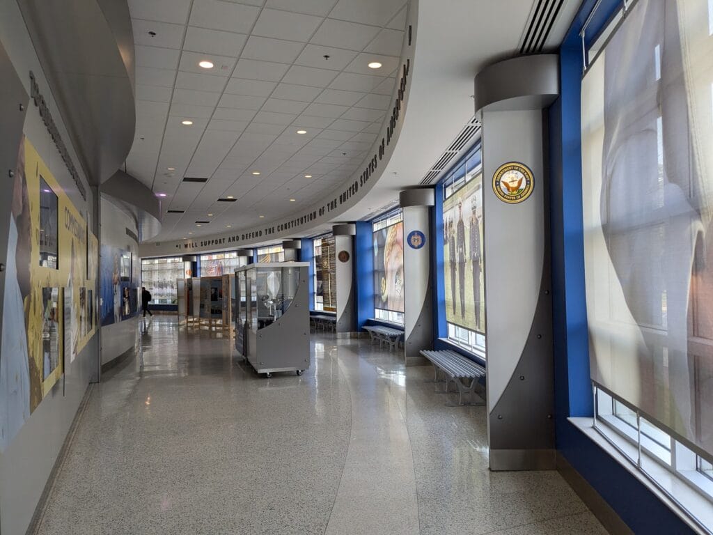 - US Navy purchased the historic Wright Brothers B1 Flyer and hangs above the second deck in Dahlgren Hall.