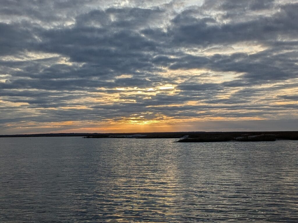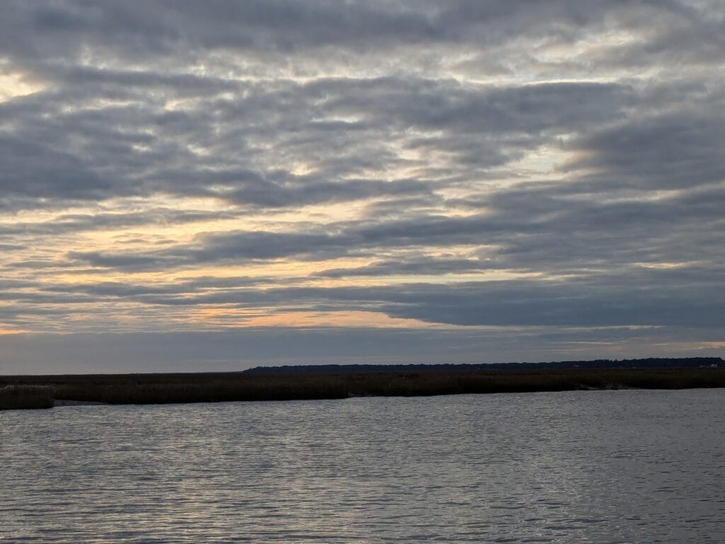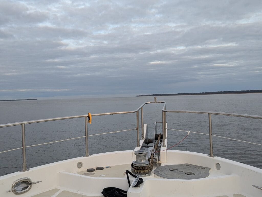 We had planned to drop anchor at Walburg Creek (St Catherine’s Island, GA) but after going aground shortly after entering St Catherine’s Sound, we anchored along Van Dyke Creek instead.