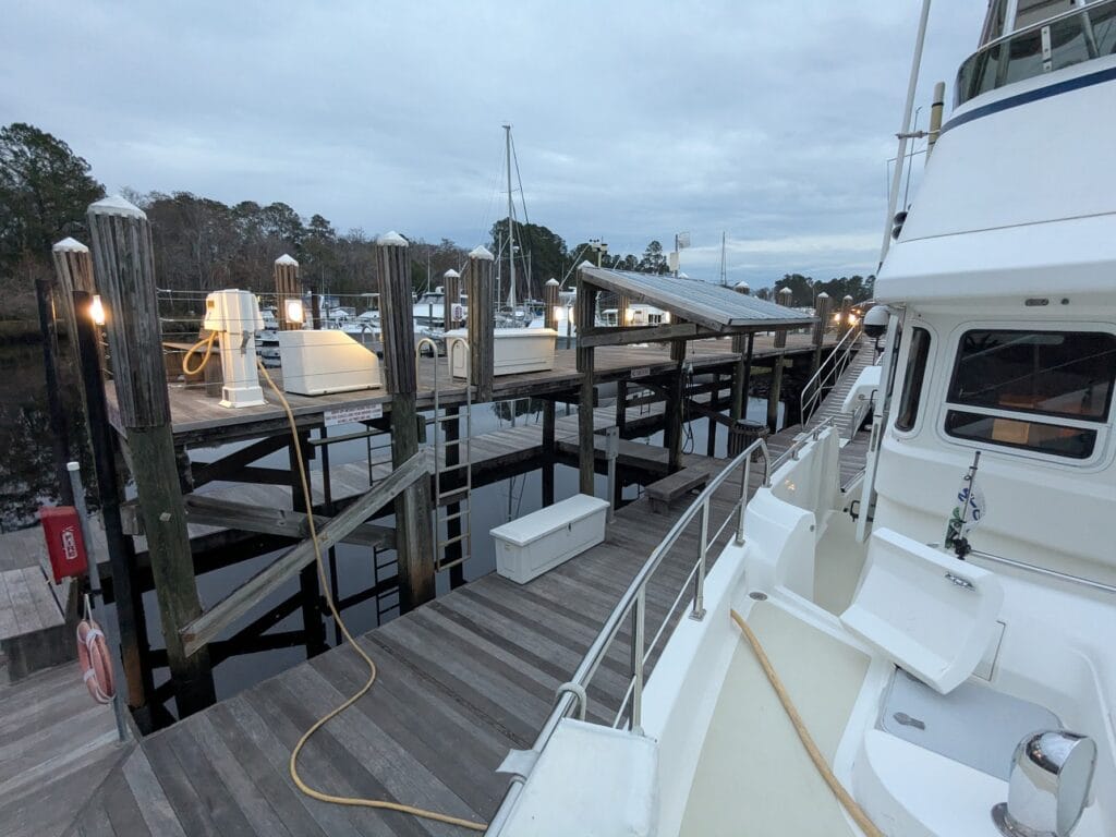 Pros: Complimentary Pump Outs, Deep Water Channel, Dock Hands, Electricity (30/50), Friendly Staff, Location (ICW, MM373), Protected Harbor, Transient Rate, Water Depth (9′), & Welcome Packet