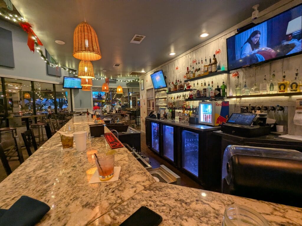 Pros: Attentive Staff, Cleanliness, Comfortable Seating, Food Taste, Fresh Ingredients, Hours (12PM – 9:30PM), Location, Menu Options, Portable Seat Side Payment, Quick Food Service, Seafood Not Overcooked (Alaskan & King Crabs), & Within Walking Distance to/from Palmetto Bay Marina