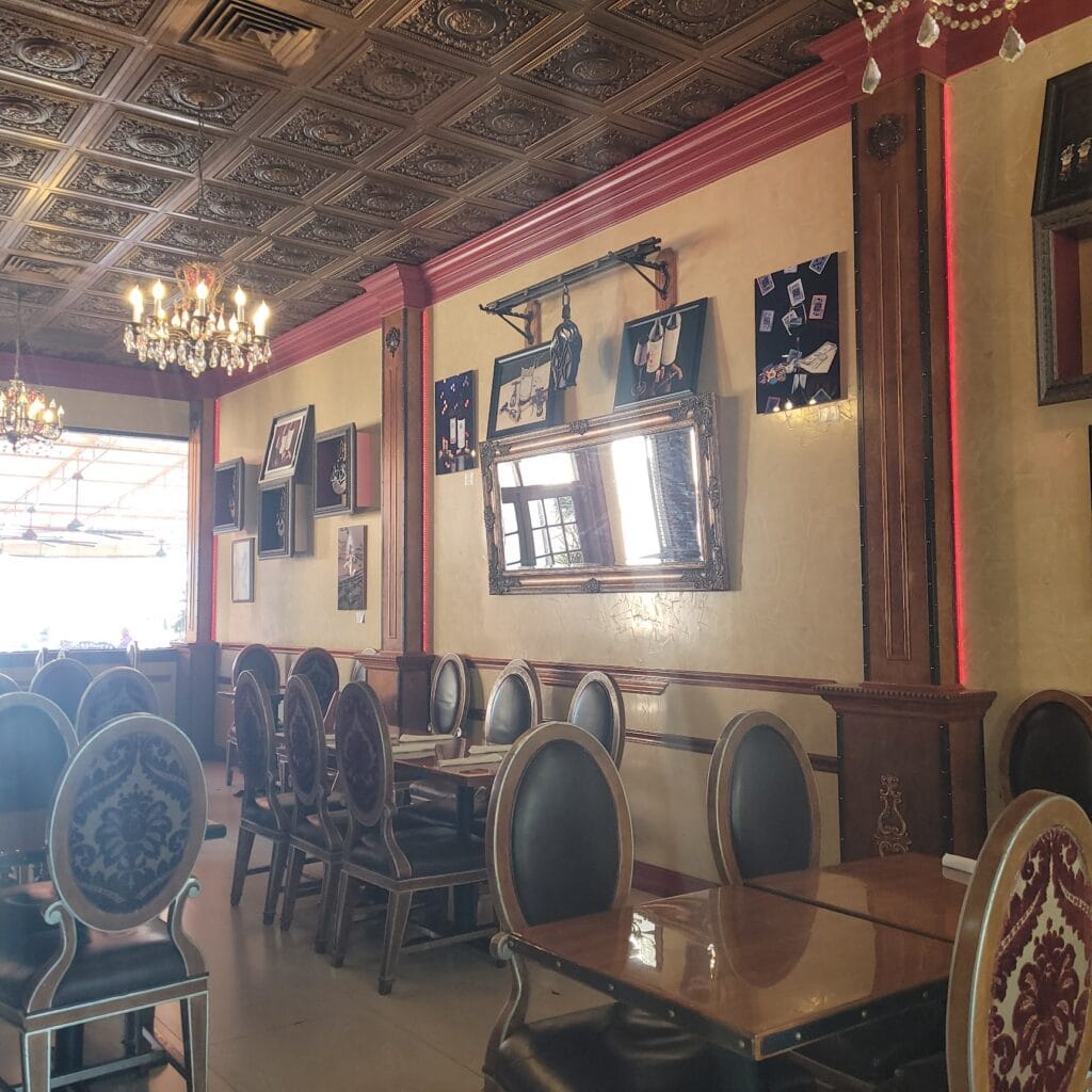 Cons: Both Had the Same Dish & Diarrhea Thereafter, Darkish Setting, Lacked Customers, & Worn Out Bar Seats