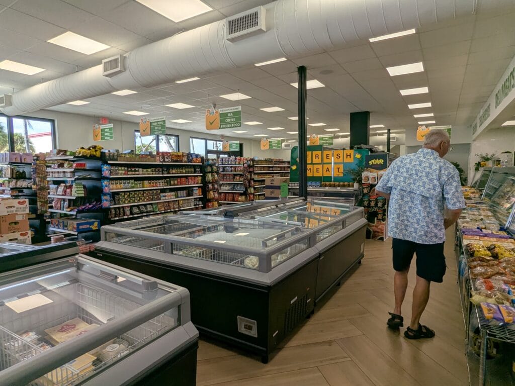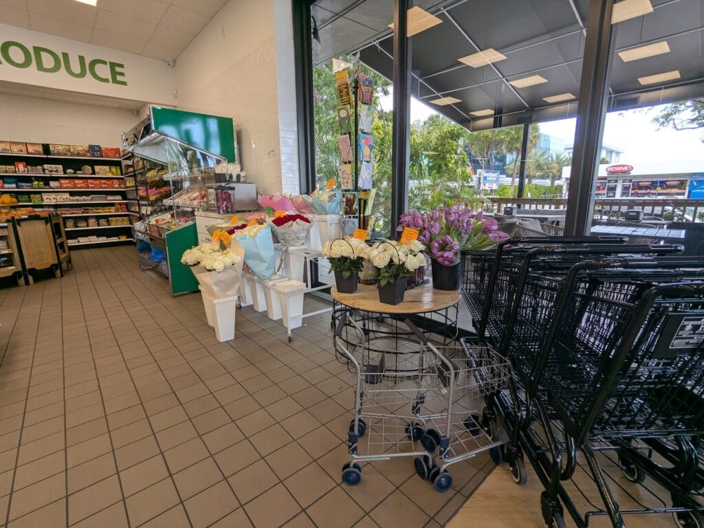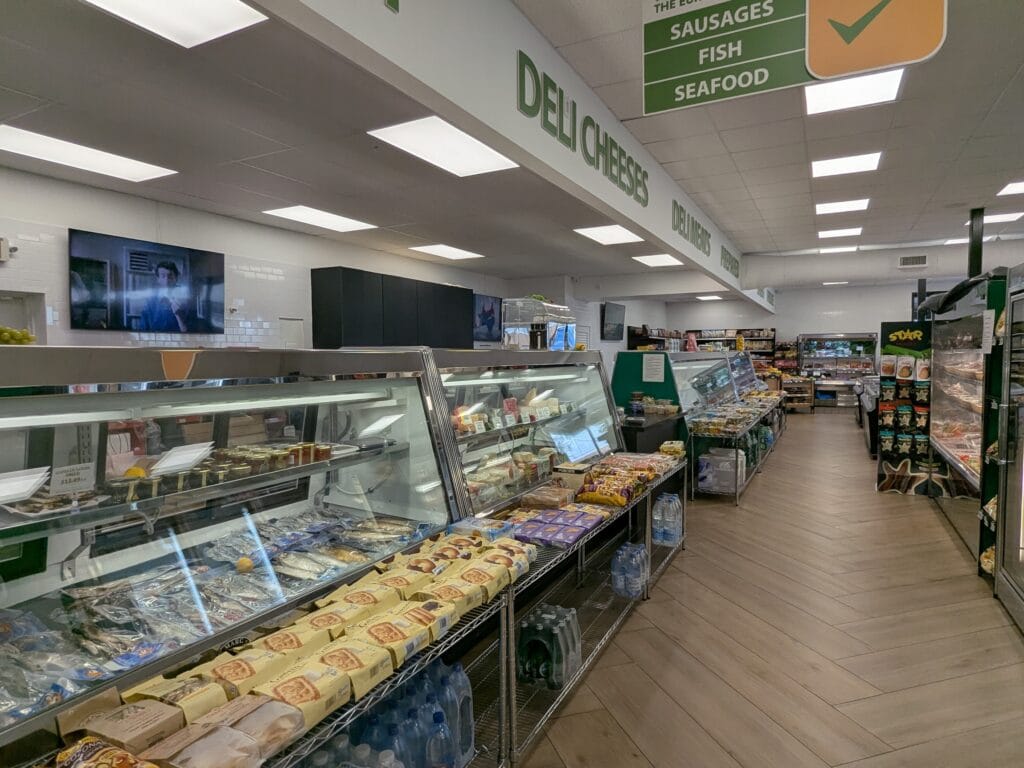 Pros: Alcohol Available, Aisle Width, Bistro Seating Available, Carts & Hand Baskets Available, Cleanliness, Desserts, Discounted Items, Food Quality, Fresh Produce, Fruits, Frozen Goods, Grab & Go Options, Hours (9AM – 8PM), Location, Options, Seasonal Goods, Shelf Goods, Variety, & Well Stocked
